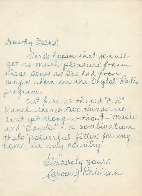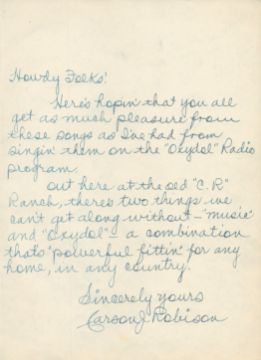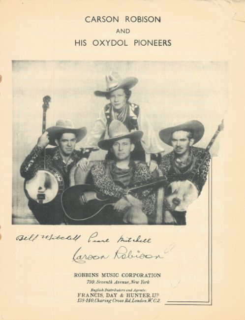 Carson Robinson, Bill Mitchell and Peral Mitchell signed Vintage song book 23 tunes as includes ALS by Carson Robinson. Good condition. All autographs come with a Certificate of Authenticity. We combine postage on multiple winning lots and can ship worldwide. UK postage from £5.99, EU from £7.99, Rest of World from £9.99