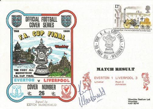 EVERTON V LIVERPOOL 1986 DAWN FIRST DAY COVER SIGNED BY KEVIN MCDONALD. Good condition . All